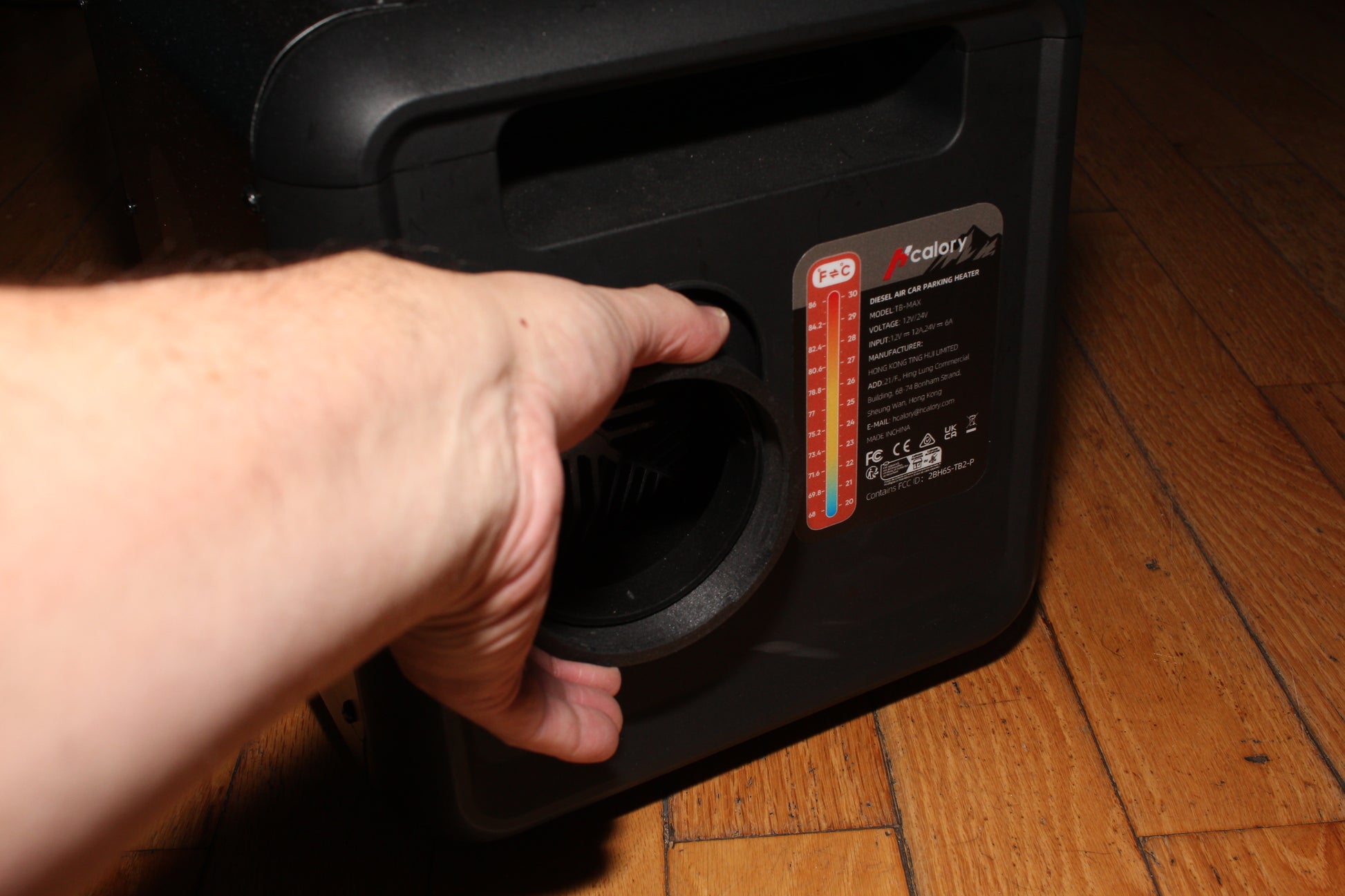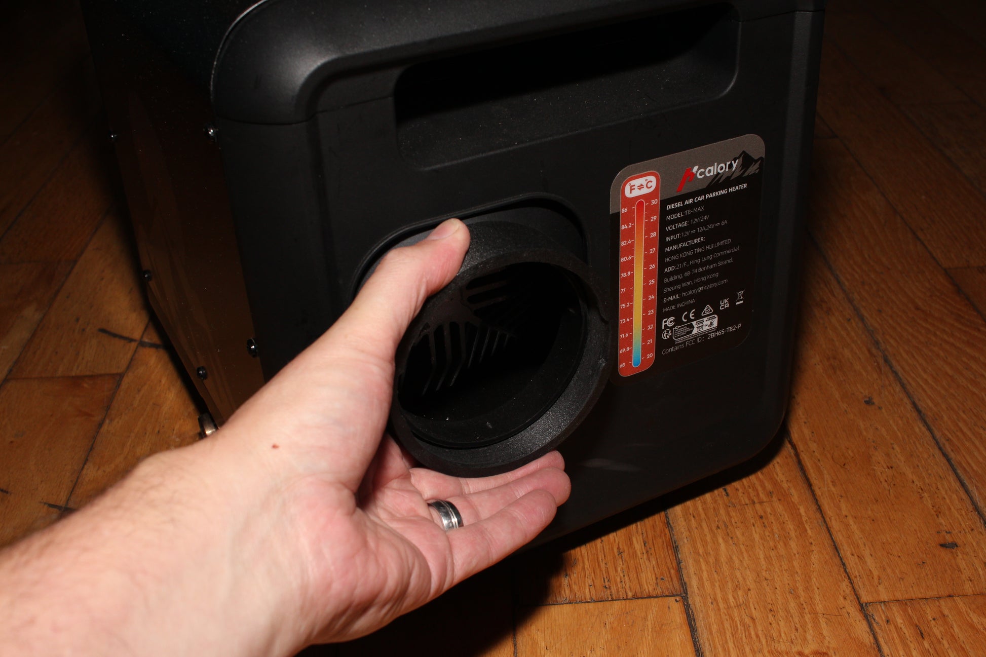 Some heaters make great heat and then ruin the experience with a non-standard exhaust size. The Hcalory heater uses a proprietary 3.5-inch outlet with twist-lock tabs, making it incompatible with most off-the-shelf ducting and tent passthroughs.